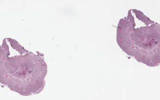 She was subsequently referred for further work up and treatment and underwent an additional biopsy (this case) by the surgeon who saw residual disease during a colonoscopy. The biopsy shows malignant infiltrative epithelioid cells.