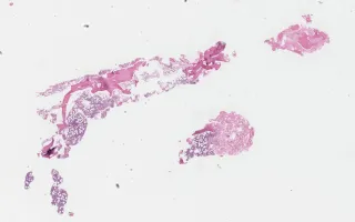This slide shows H&E of bone marrow biopsy. See related content for peripheral blook, bone marrow aspirate, and IHC stains of bone marrow biopsies.