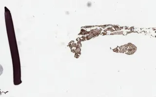 This slide shows Lambda stain of bone marrow biopsy. See related content for peripheral blook, bone marrow aspirate, and H&E and IHC stains of bone marrow biopsies.
