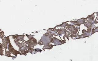 This slide shows bone marrow biopsy IgM stain. See related content for other peripheral blood and bone marrow biopsy stains.