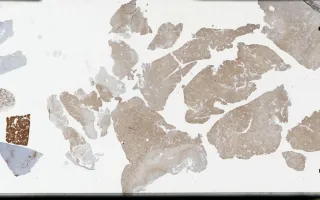 Yang, H., Keith, J. Brain, Angiomatous meningioma, EMA stain. Digital Laboratory Medicine Library, Dept of Laboratory Medicine & Pathobiology, University of Toronto. Published . Accessed December 17, 2025. https://dev.dlml.cflabs.ca/image/brain-angiomatous-meningioma-ema-stain-lmp12111