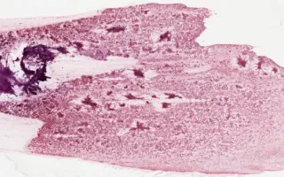 Epithelioid glioblastoma is a recognized variant of glioblastoma that occurs mainly in children and young adults and has an especially poor prognosis. Microscopically, they are characterized by a dominant population of closely packed epithelioid cells, along with the other features of mitotic activity, microvascular proliferation, and necrosis found in typical glioblastomas. Tumour cells displaying cytoplasmic processes, indicative of their glial nature, are helpful if present - this slide. E-GBM is immunoreactive for S100. Unlike typical GBMs, GFAP is often patchy or even absent. (However, in this case it was strongly positive - see Related Content). Approximately 50% of E-GBMs contain a BRAF V600E mutation.
