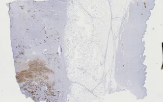 This slide shows CK7 stain. See related content for H&E, S100, and p63 stains.