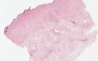 This case is a classic presentation of this entity. The patient presented with a history of nipple scaling, oozing, and erythema. This clinical presentation occurs because the malignant Paget cells disrupt the normally tight squamous epithelial barrier. In this case, a skin biopsy lead to a diagnosis of Paget disease and further work up lead to the discovery of a retroareolar invasive ductal carcinoma and positive nodes. The patient underwent neoadjuvant chemotherapy and subsequently had a mastectomy (this specimen). There was no invasive carcinoma remaining in the treated breast. Also, of note, the patient was male.