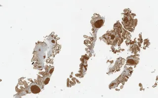 Similar to nodal FL, most GI FLs are positive for CD20, CD79a, CD10, BCL-6 and BCL-2. What is unique about duodenal FLs is the presence of the “hollow” pattern of staining seen with CD21 and CD23. This is due to the peripheral arrangement of the follicular dendritic cells with relative sparing of the follicular centre. In contrast, the follicular dendritic cells are scattered throughout the neoplastic follicles in nodal FL.