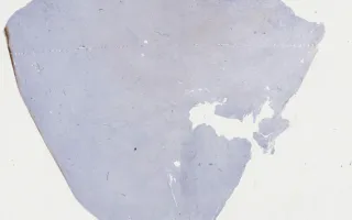 This slide shows SMA stain. See related content for H&E, inhibin, and calretinin stains.