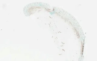 This slide shows ACE stain. See Related Content for H&E and calretinin stains.