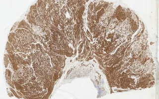 Patients with tuberous sclerosis complex (TSC) are predisposed to a number of tumours, including pulmonary lymphangioleiomyomatosis (LAM) and renal angiomyolipomas (AML). This case is a rare example of leiomyomatosis-like lymphangioleiomyomatosis involving the rectum. Microscopically, the rectal wall is thickened with ill-defined nodules of spindle cells and vessels. LAM and AML are both part of the spectrum of perivascular epithelioid tumours (PEComas). Immunohistochemical stains showed that the lesional cells were diffusely positive for desmin and SMA, and had patchy HMB-45, ER, and PR positivity. This resection specimen also contained an incidental well-differentiated neuroendocrine tumour.