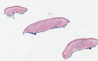This slide shows H&E stain. See Related Content for Alcian blue stain.