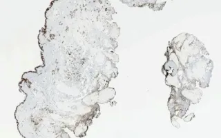 This slide shows GLUT1 stain. See Related Content for H&E stain.