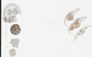 This slide shows CD10 stain. See related content for H&E, CD20, and CD21 stains.