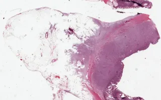 This slide shows H&E stain. See related content for CD68 and CD117 stains.