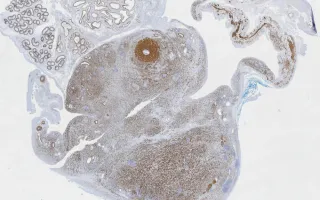 This slide shows desmin stain. See Related Content for H&E, SMA and myogenin stains.