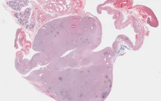 This slide shows H&E stain. See Related Content for SMA, desmin, and myogenin stains.
