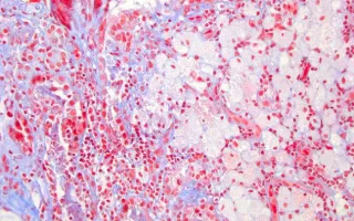 Kidney, Xanthogranulomatous pyelonephritis, Trichrome stain