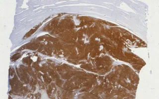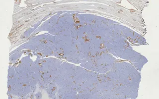 Uterus, Highly cellular leiomyoma, caldesmon stain