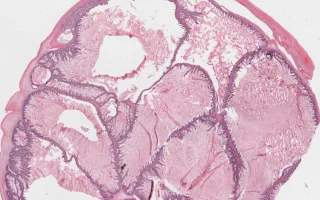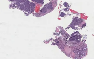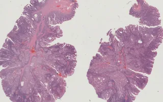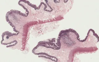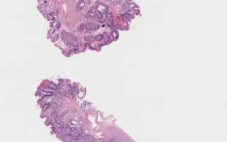 Gastroesophageal junction, Helicobacter heilmannii gastritis, H&E stain