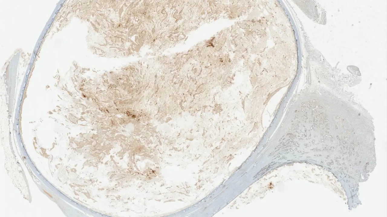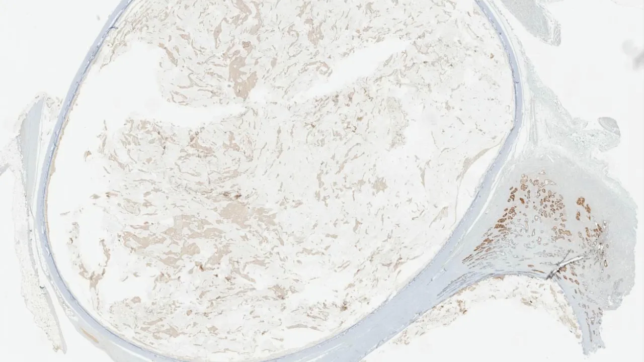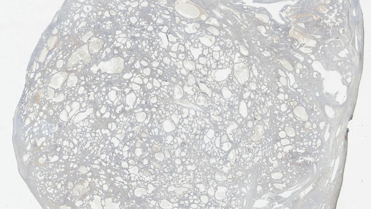Ovary, yolk sac tumour, EMA stain