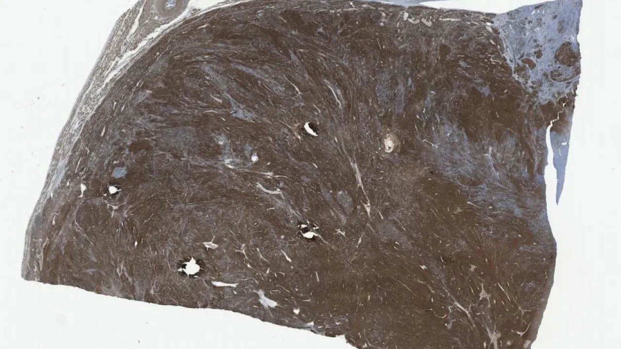 Uterus, leiomyosarcoma, caldesmon stain