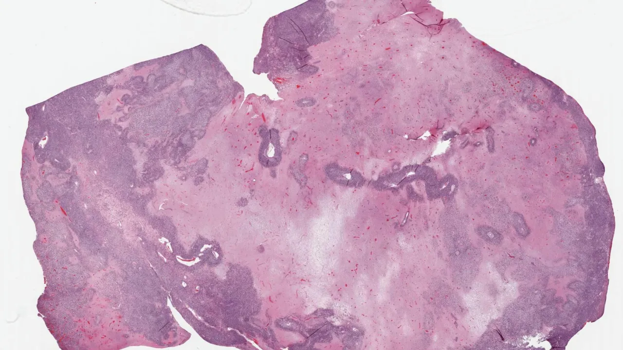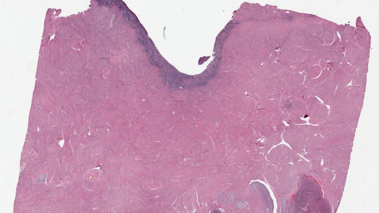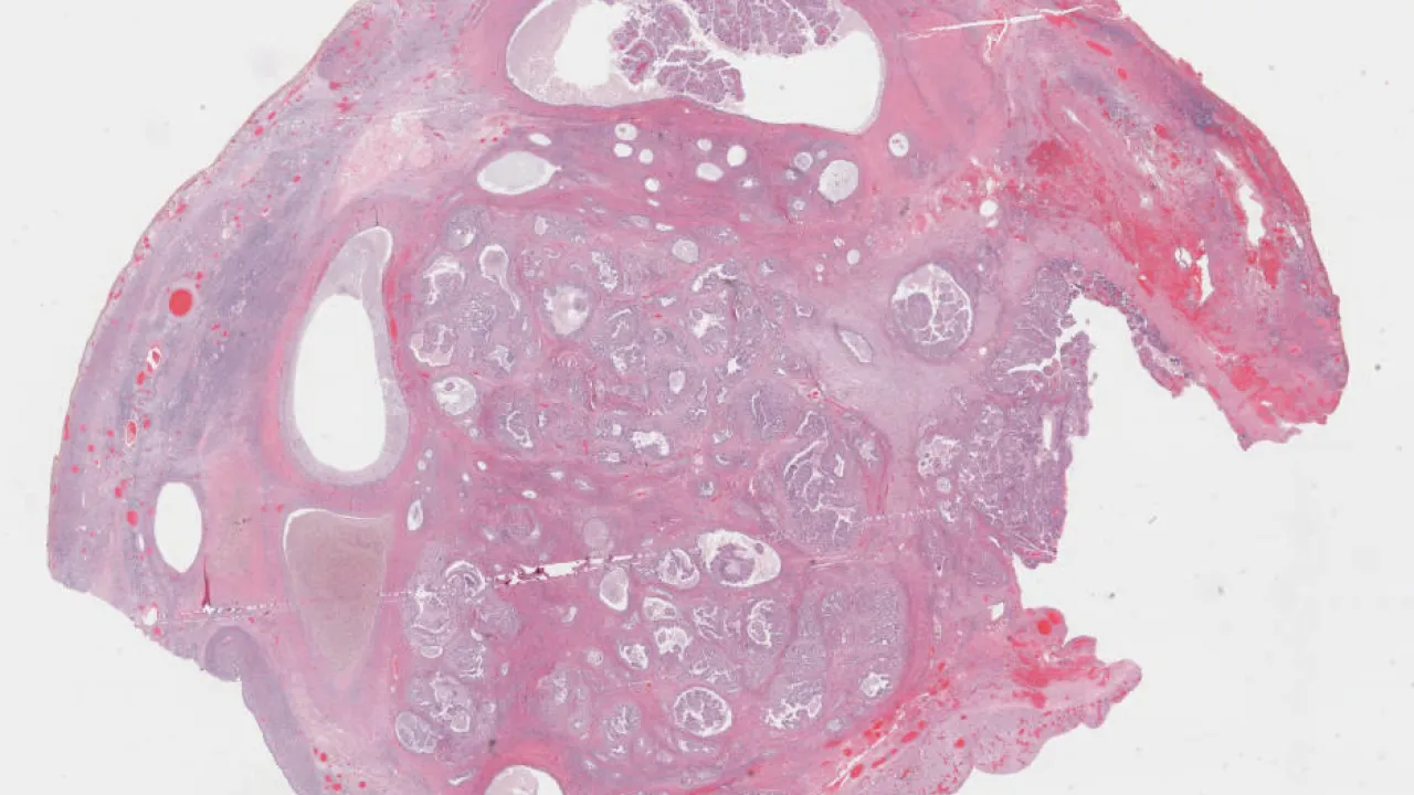 Ovary, prostate tissue in mature cystic teratoma, H&E stain