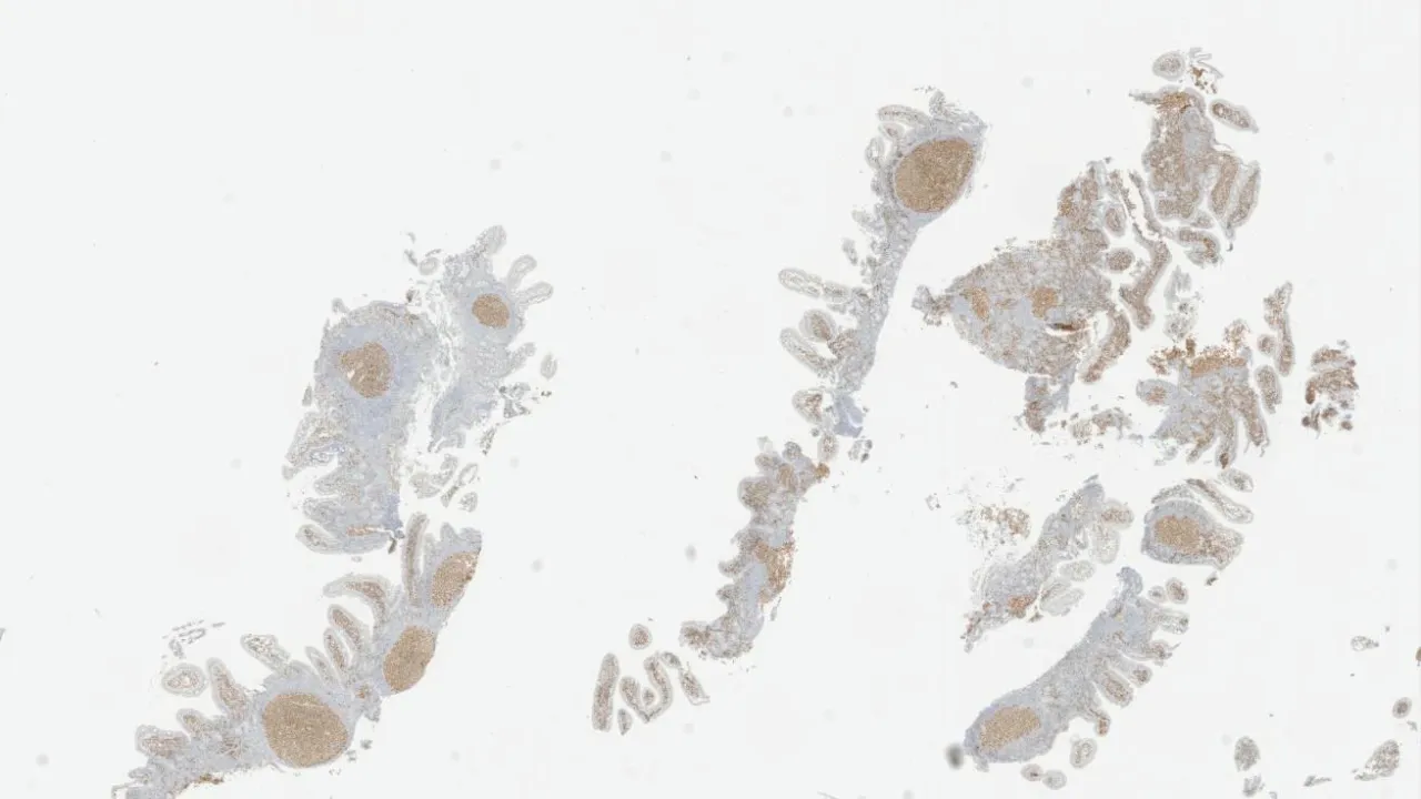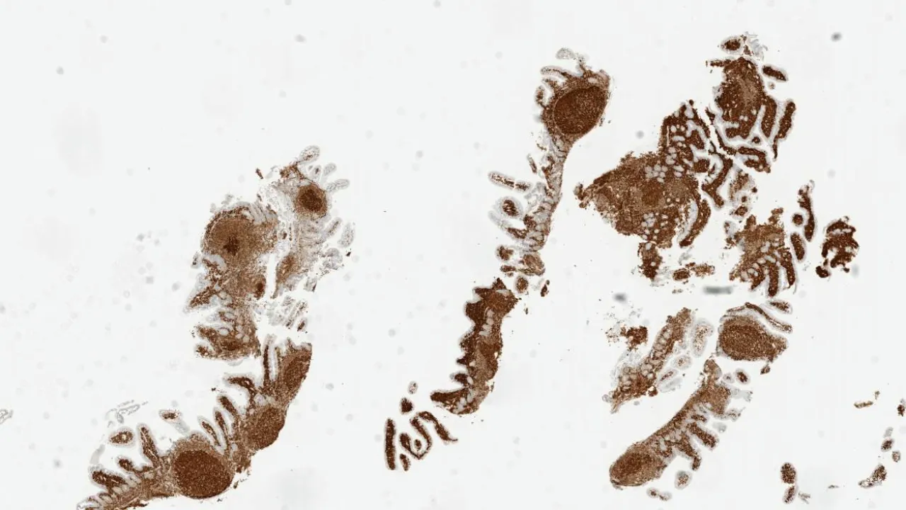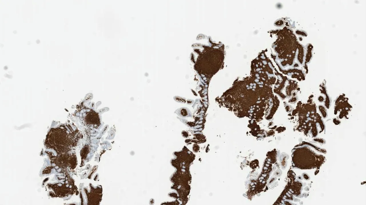 Duodenum, Follicular lymphoma, CD20 stain