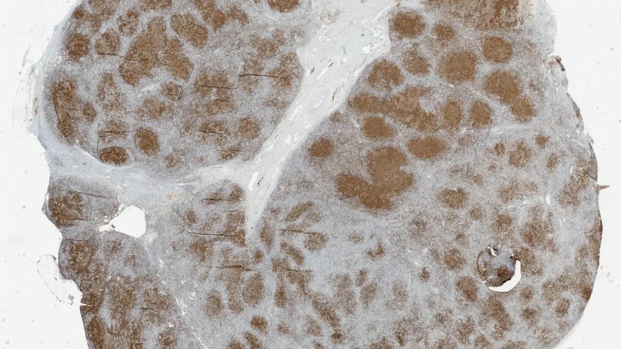 Lymph Nodes, Follicular lymphoma, CD20 stain