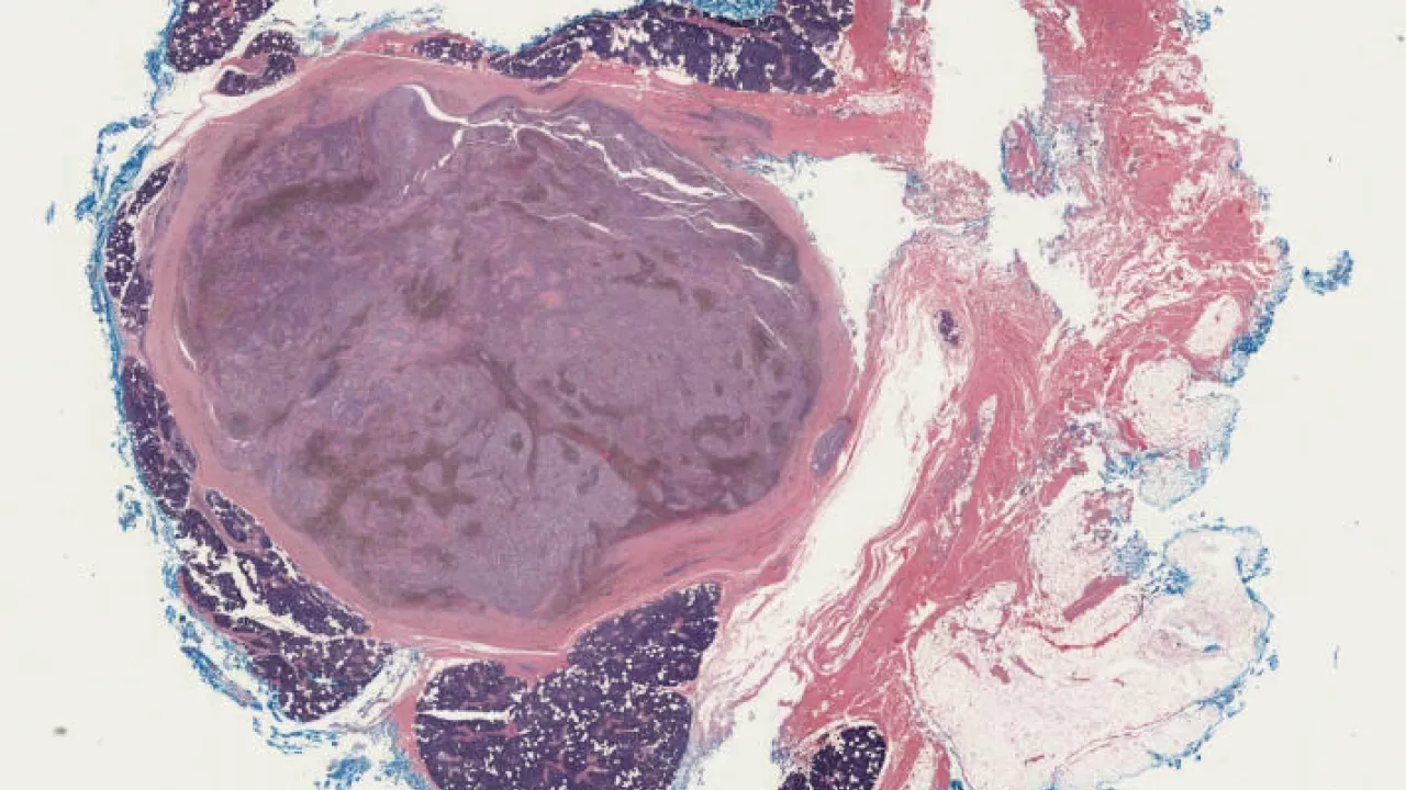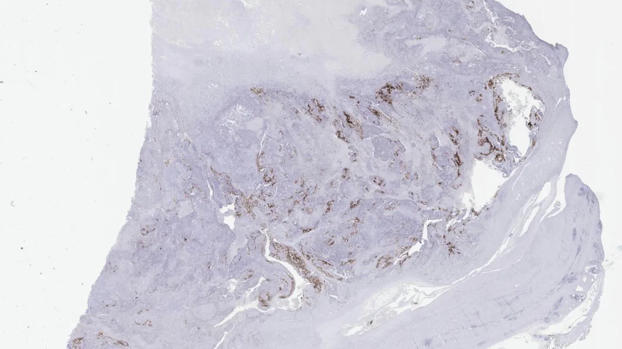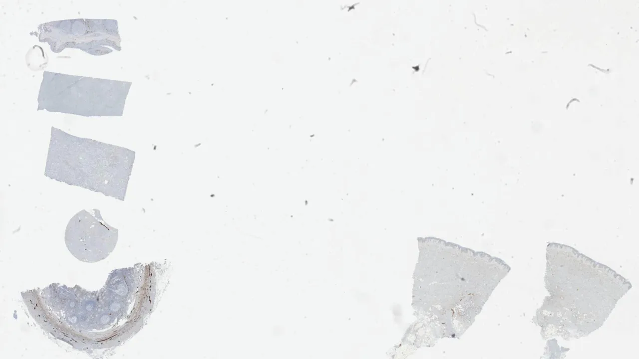 Lymph nodes, Small lymphocytic lymphoma/Chronic lymphocytic leukemia, Cyclin D1 stain