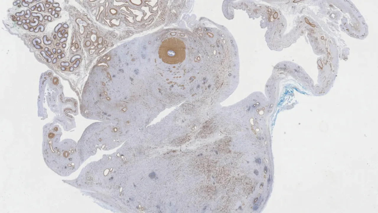 Testis (undescended), Yolk-sac tumour, AFP stain