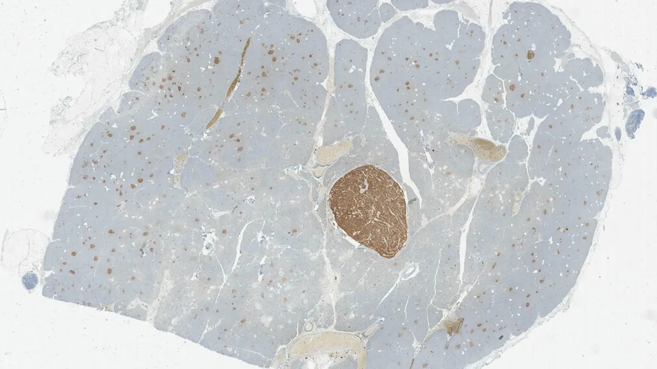 Pancreas, Pancreatic neuroendocrine tumour, low grade, Glucagon stain