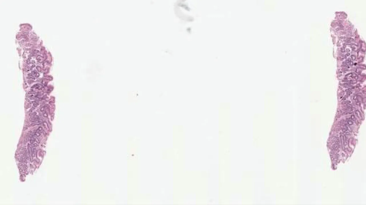 Gastroesophageal junction, Helicobacter heilmannii gastritis, H&E stain